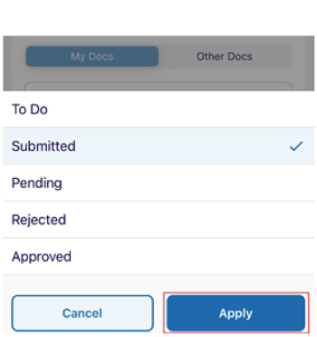 Click on the required status option and click the Apply button displayed at the bottom of the screen. The document(s) available for the selected status are displayed.