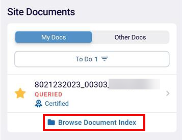 - Click on the Browse Document Index button to view the list of available document