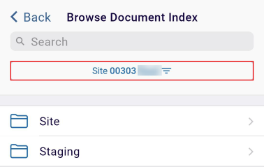 - By default, the selected site’s index is displayed. To change the site and its index,