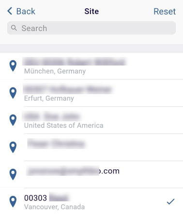 - From the list of available sites, select the required site. Click on the Reset