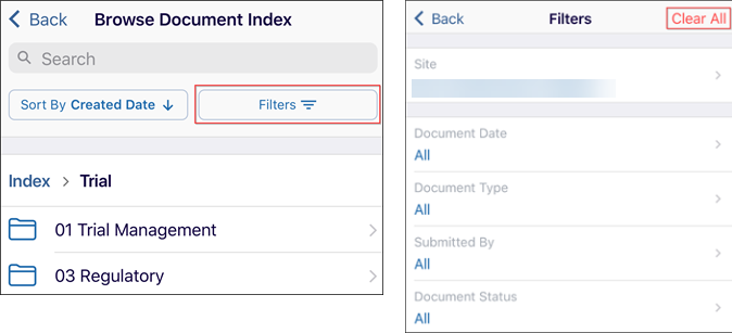 - Click on the Filters tab to apply filters for Trial, Country, and Site and sub-filters for