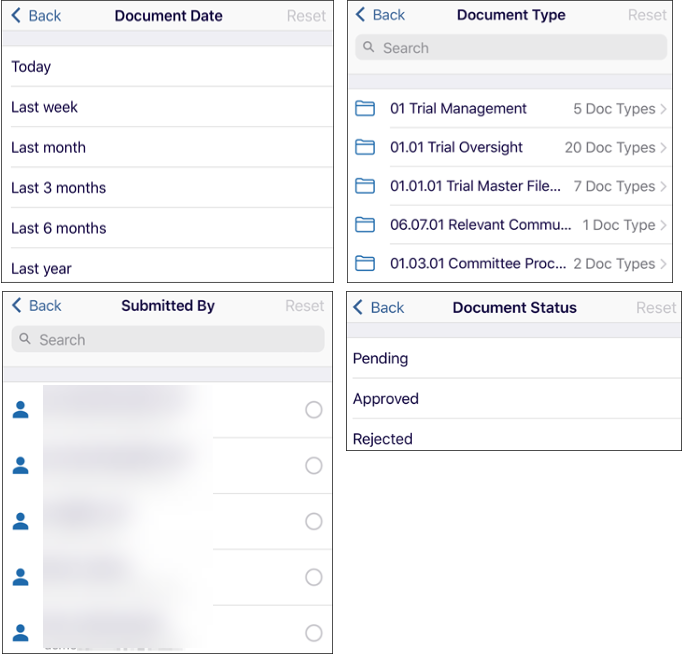 Document Date, Document Type, Submitted By, and Document Status.