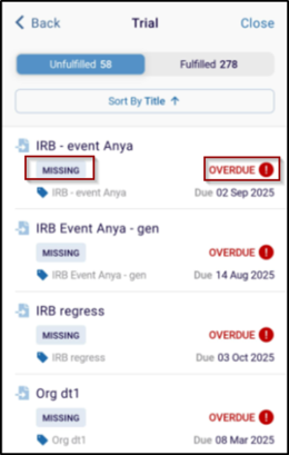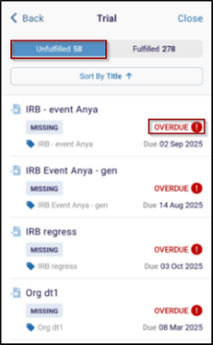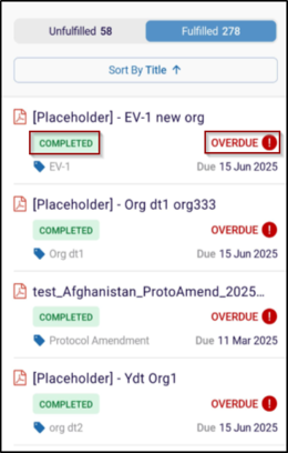 This enhancement introduces a comprehensive fulfillment tracking system within the eTMF view, categorizing documents into Fulfilled and Unfulfilled sections for better visibility and control.