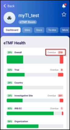 Overdue Document Counter in eTMF Health Dashboard Bar