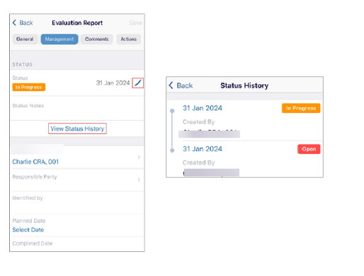 - Click the Management tab to edit the Status, Owner, and other details