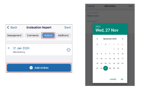 - Click the Actions tab to add a new action. Click the Select Date link to add