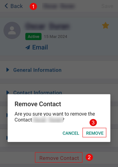 - Click on the Remove Contact button.
