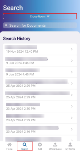 To search for documents across rooms, follow the steps below: