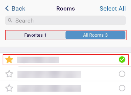 - Click on the All Rooms tab, select a room, and navigate back to the Search