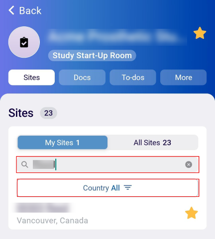 - On the Sites tab, click on the My Sites tab and enter the search term in the search box to retrieve a specific site.