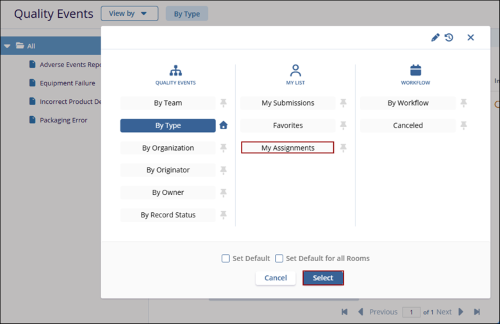 - Select the My Assignments view from the Views dropdown to display records assigned