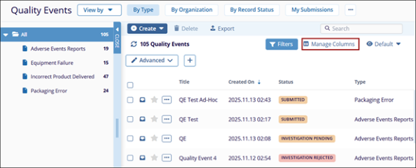 - Click the Manage Columns button in the top-right corner.