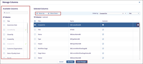 - Rearrange the column sequence by dragging and dropping the columns into the desired order, or click Move Up and Move Down buttons.