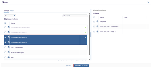 - Choose users or groups of users from the list at the left.