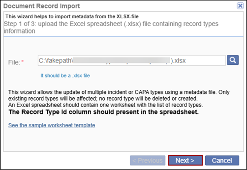 - Fill in the necessary details in the worksheet template, upload the .XLSX file, and