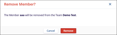 - The Remove Member? Pop-up window is displayed with the Cancel and Remove buttons.