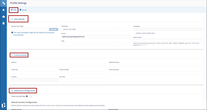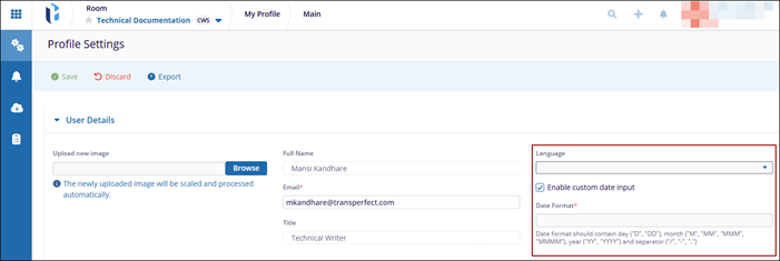 In this section, the user can manage the profile using settings which are user-specific. Any changes made in this section impact the user account and not to the room.