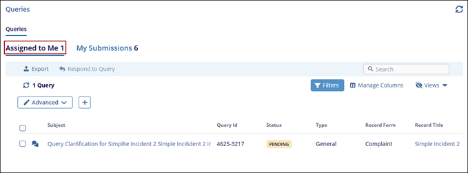 - Assigned to Me: This tab displays queries assigned to the current user.
