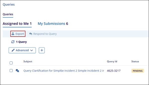 - Navigate to the Assigned to Me or My Submissions tab and click Export.