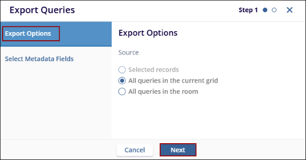 - On the Export Queries window, select the Source option and click Next.