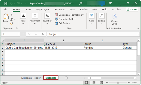 - An Excel file is downloaded into the system with the list of queries.