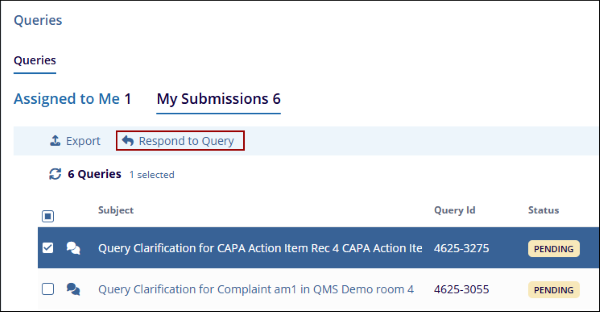 - Select a query from the list and click on the Respond to Query button.