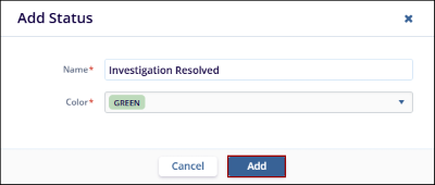- On the Add Status dialog box, fill in the following fields and click on the Add