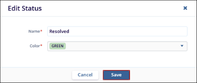 - On the Edit Status dialog box, make the required changes to the Name* and Color* fields