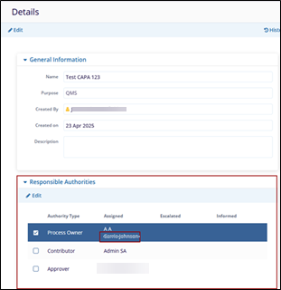 - To edit the Responsible Authorities section e.g., Process Owner