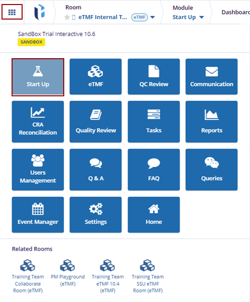 Once the basic settings and contacts are configured for Study Start-Up, users can now move forward to operate the module.