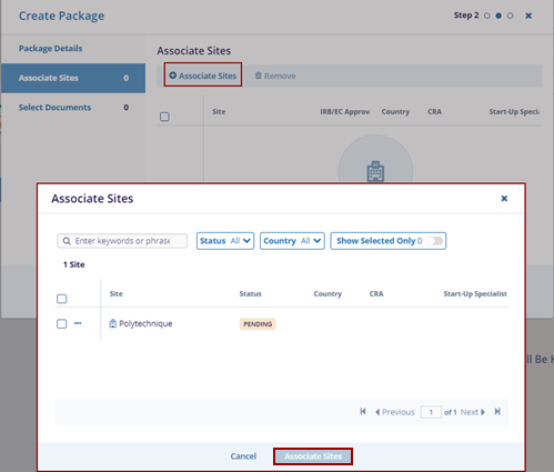 - Click Associate Sites, and the associated site is displayed within the Associate Sites tab.