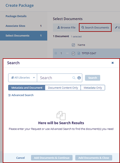 - This opens the Select Documents tab. Select an appropriate option – Browse Files OR Search Documents.