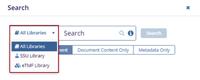 Expand the All Libraries arrow to search from SSU Library or eTMF Library.