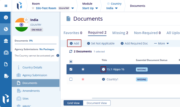 - The added required doc type is displayed in the grid with the