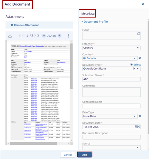 the Add Document pop-up window.