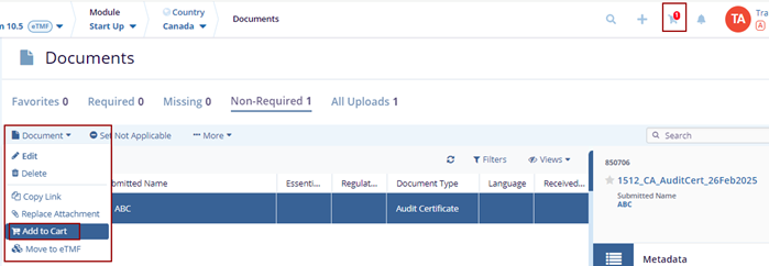 document gets added to the cart.