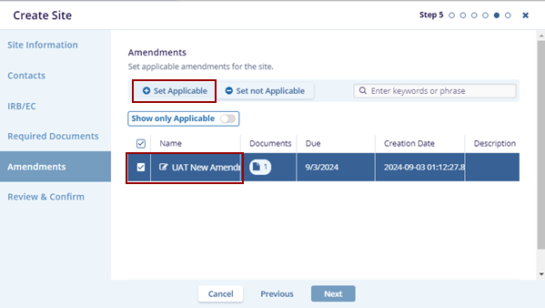 - Click the Next button. The Required Documents page is displayed on the Create Site pop-up window.