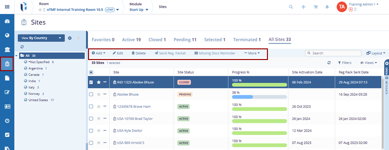 - Add Sites – Add new sites to the data room.