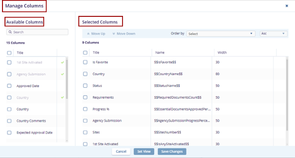 The user can manage the columns to be displayed in the grid pane by utilizing the Columns button. Follow the steps below to manage columns:
