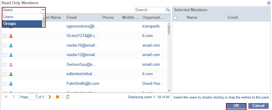 - The Read Only Members window is displayed in order to add Users/Groups by dragging the entries or by selecting them.