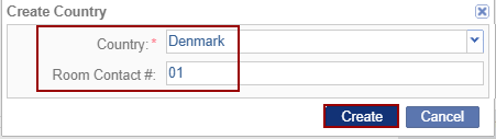 - Click Create. The name of the newly added country appears in the alphabetized