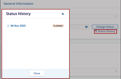 A Status History button is displayed below the Change Status button. Click the button to view the name of the user who made the changes on the Country Details page.