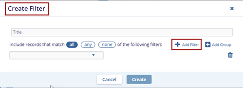 - The Create Filter pop-up window is displayed.