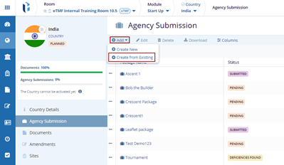 Follow the steps in the Add Agency Submission section to update the Package Details, Add Countries, and Select Documents sections for the existing package.