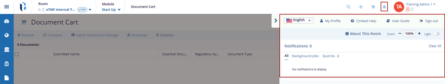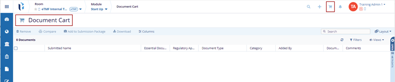 - Documents Cart icon: All documents added to the cart can be viewed here.