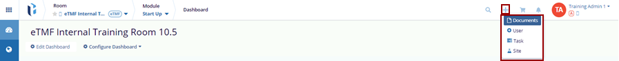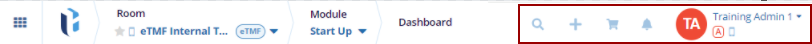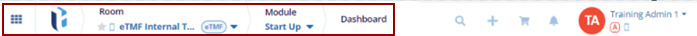 - Waffle icon: displays the modules available in the selected room
