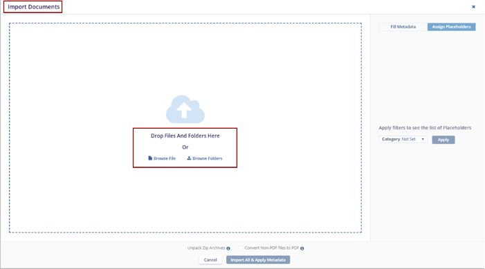- Click Browse File or Browse Folders to import documents, or simply drag