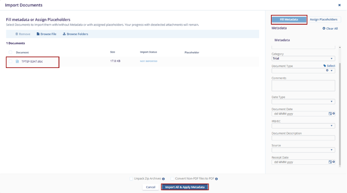 - Fill in the Metadata and click Import All & Apply Metadata.