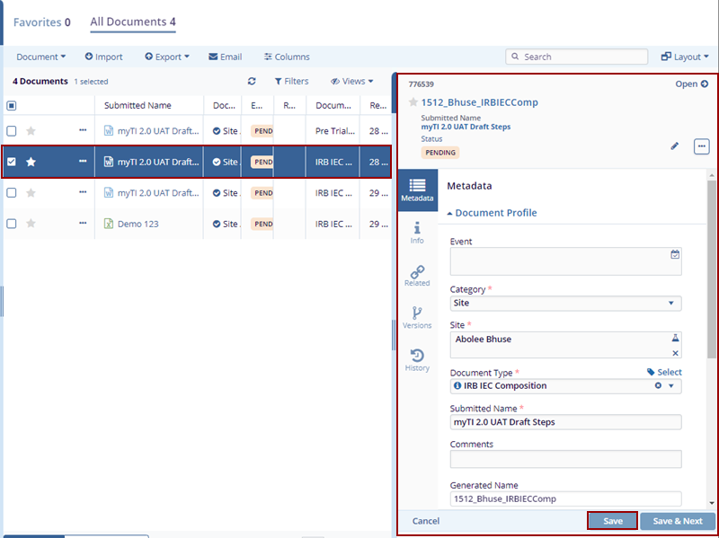 - Click the dropdown menu of the Document button OR click the three-dot menu next to the checkbox of the selected document.