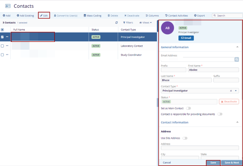 - Make edits to the contact details and click on the Save button. The changes get saved.